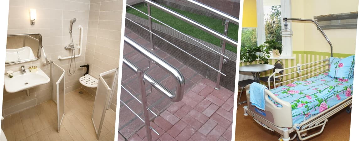 Там есть необходиые пандусы для кресел-каталок, а также поручни, специальные приспособления для санузла.